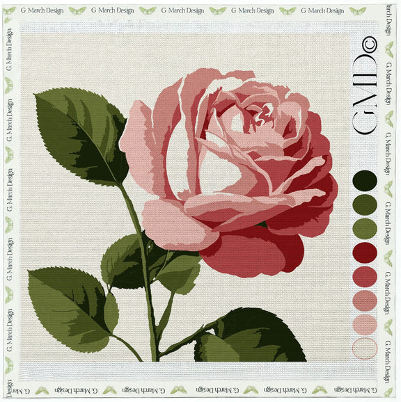 Celebrate New York's iconic state flower with this premium needlepoint canvas by G. March Design. Rendered in a rich palette of deep crimson, blush pink, and forest green, this botanical design captures the timeless elegance of the rose in a painterly, graphic style ideal for stitching.