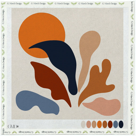 Inspired by the bold, organic shapes of Henri Matisse’s iconic cut-out compositions, The Forms (Les Formulaires) transforms modern art into a striking needlepoint design. This contemporary composition features flowing abstract forms and rich color blocks that echo Matisse’s celebrated late works.